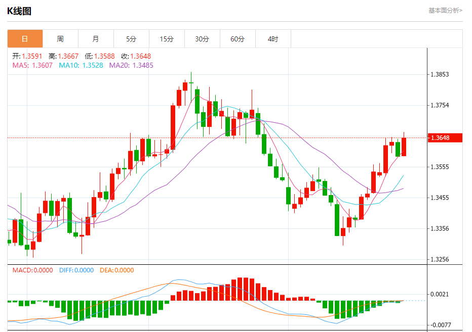 截至目前,美元/加元上涨0.44%,报1.3651。