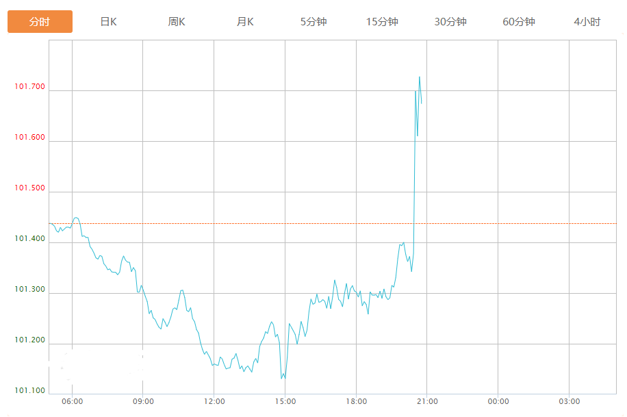 截至目前,美元指数上涨0.24%,报101.685。