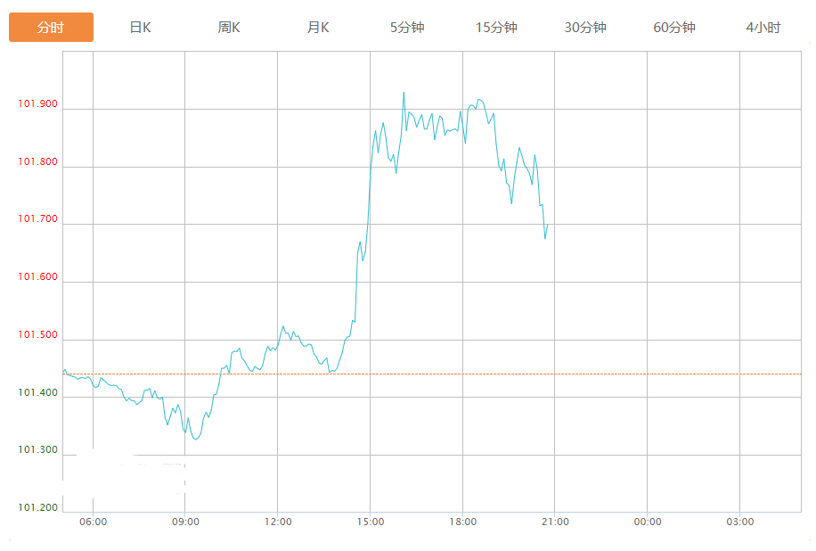 截至目前,美元指数上涨0.26%,报101.701。