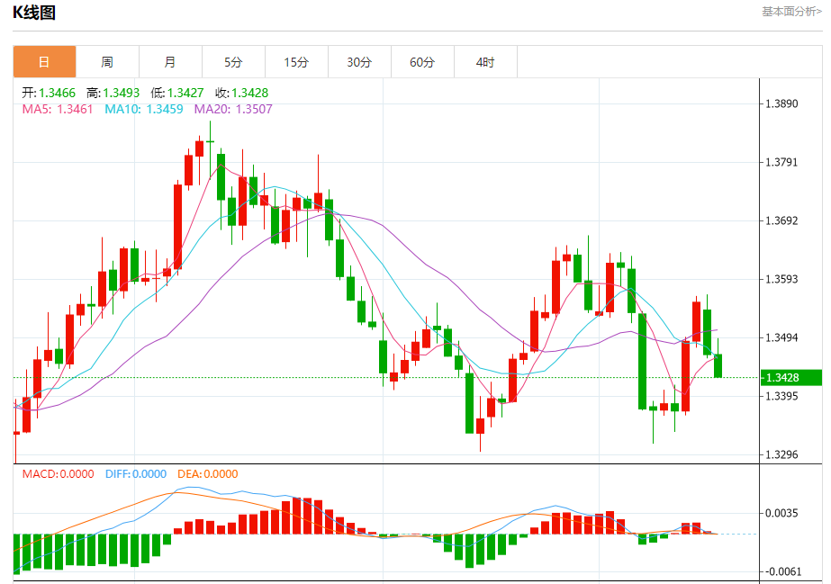 截至目前,美元/加元下跌0.26%,报1.3432。