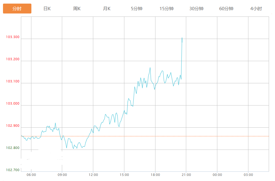 截至目前,美元指数上涨0.40%,报103.294。