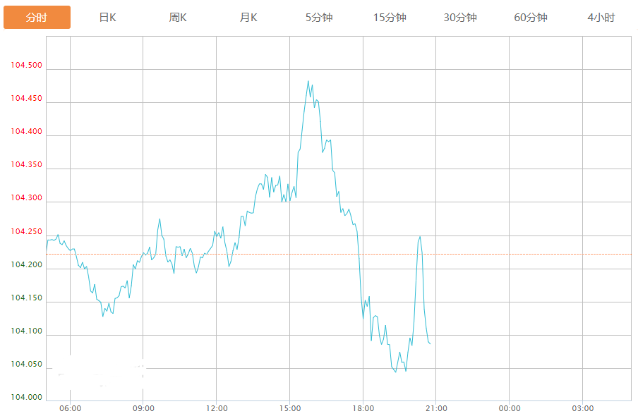 截至目前,美元指数下跌0.12%,报104.093。