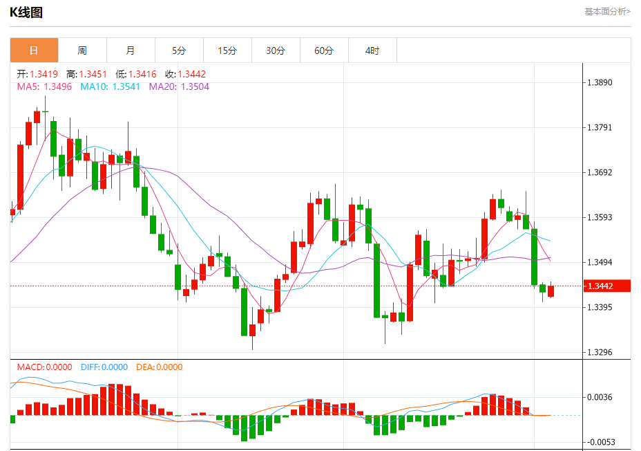 截至目前,美元/加元上涨0.17%,报1.3444。