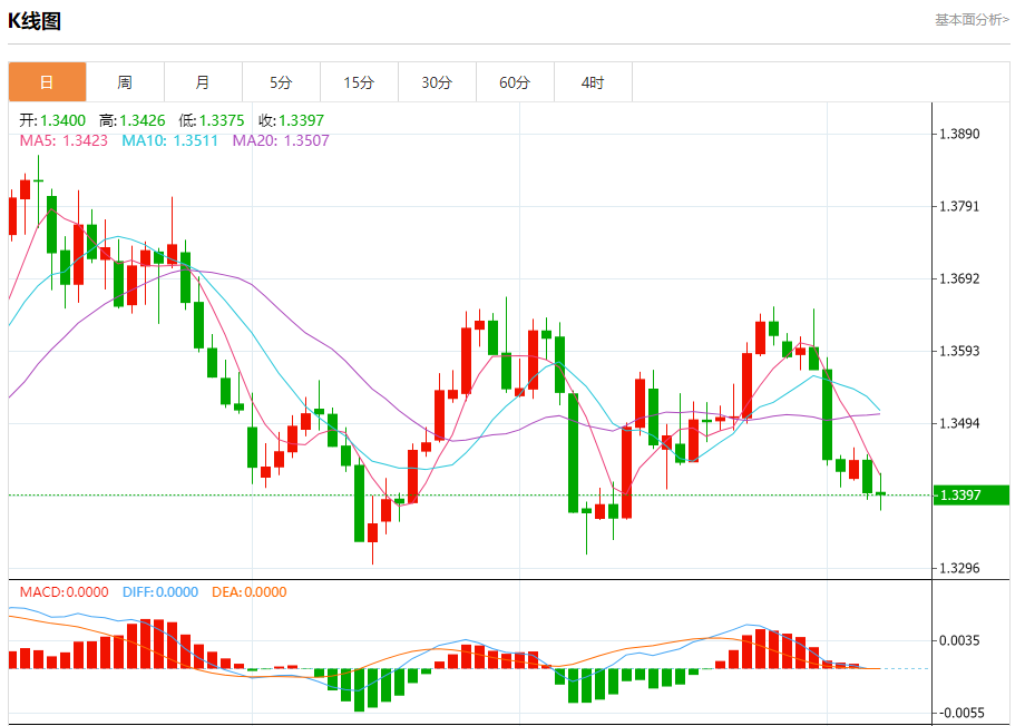 截至目前,美元/加元下跌0.01%,报1.3400。