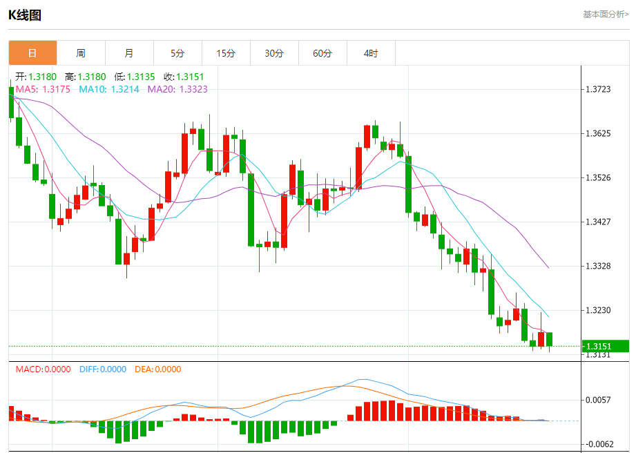 截至目前,美元/加元下跌0.22%,报1.3154。