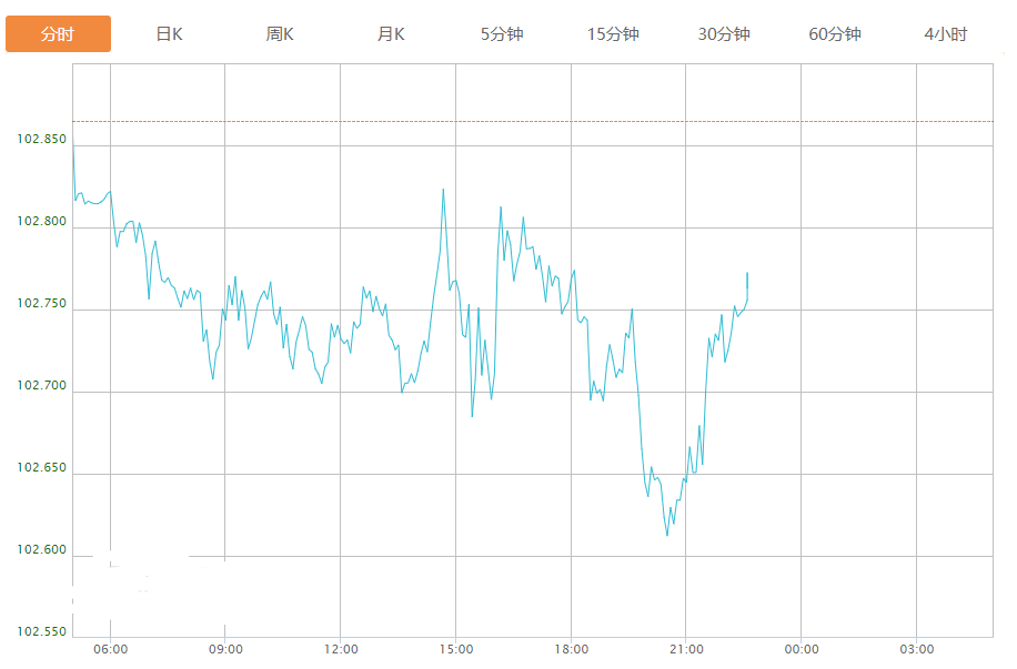 截至目前,美元指数下跌0.11%,报102.748。
