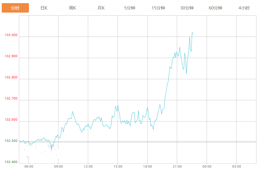 截至目前,美元指数上涨0.49%,报103.007。