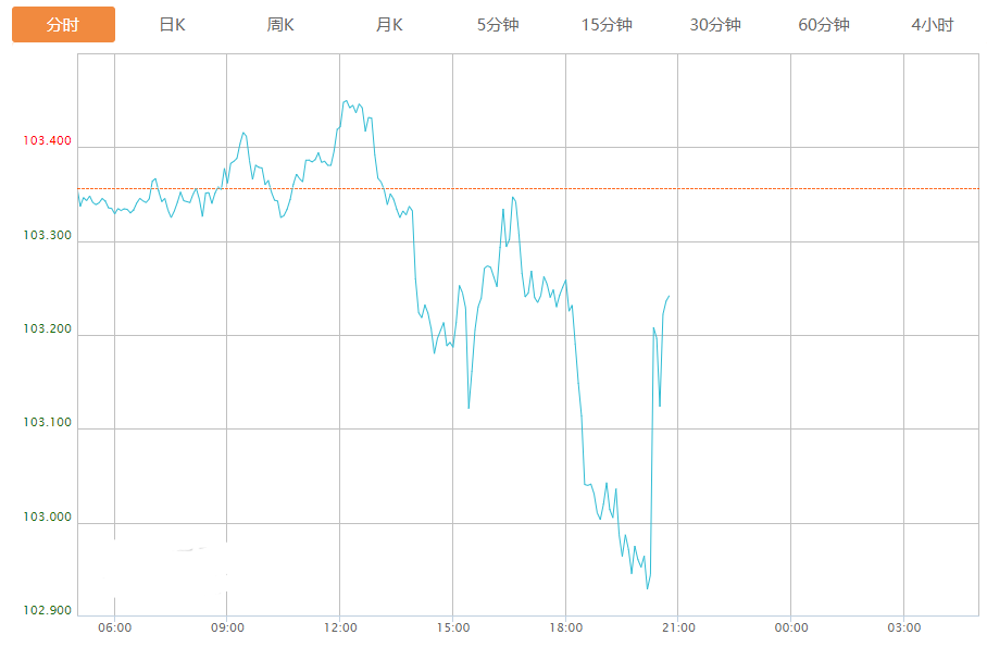 截至目前,美元指数下跌0.12%,报103.235。