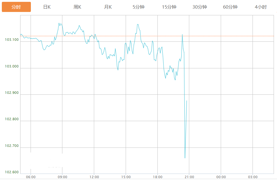 截至目前,美元指数下跌0.25%,报102.867。