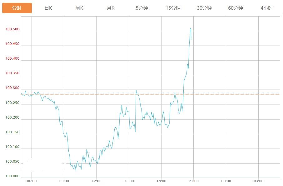 截至目前,美元指数上涨0.20%,报100.489。