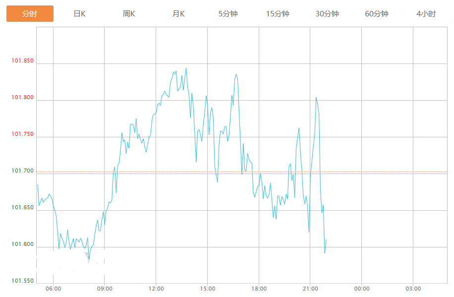 截至目前,美元指数下跌0.09%,报101.609。