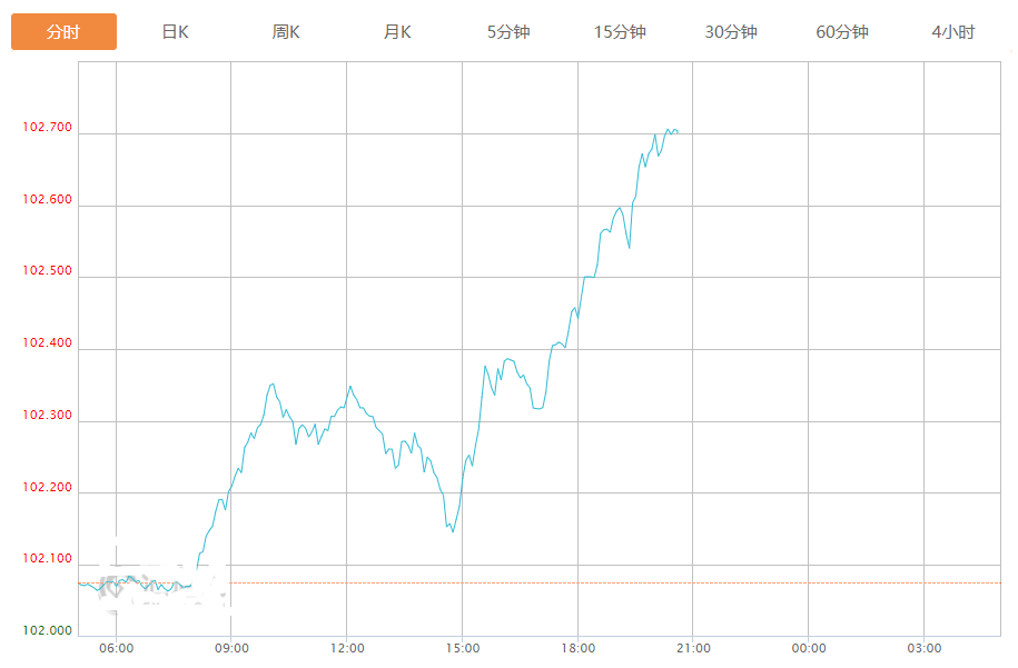 截至目前,美元指数上涨0.61%,报102.702。