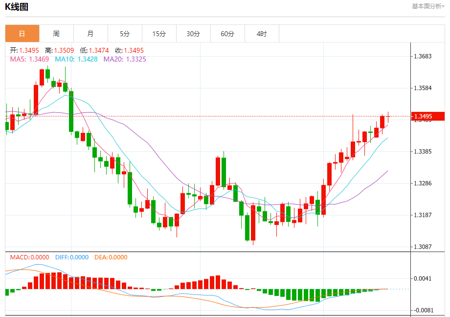 截至目前,美元/加元下跌0.01%,报1.3497。