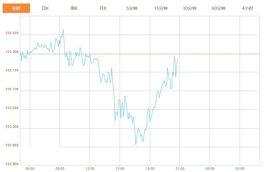 截至目前,美元指数下跌0.01%,报103.187。