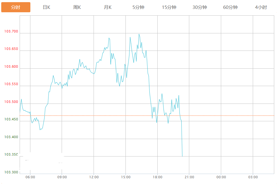 截至目前,美元指数下跌0.08%,报103.381。