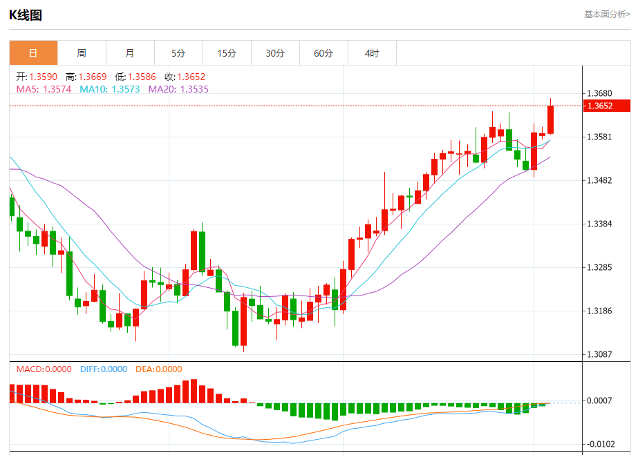 截至目前,美元/加元上涨0.47%,报1.3654。