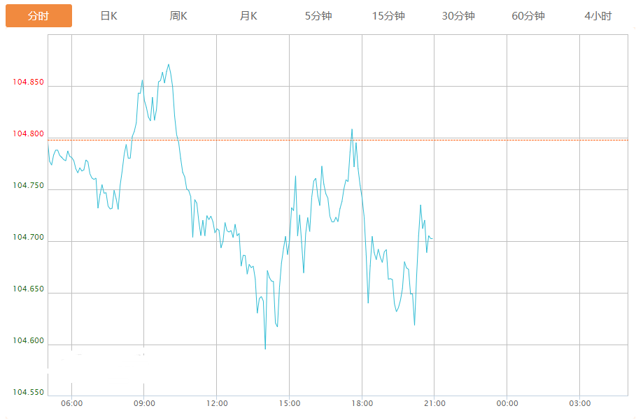 截至目前,美元指数下跌0.09%,报104.701。