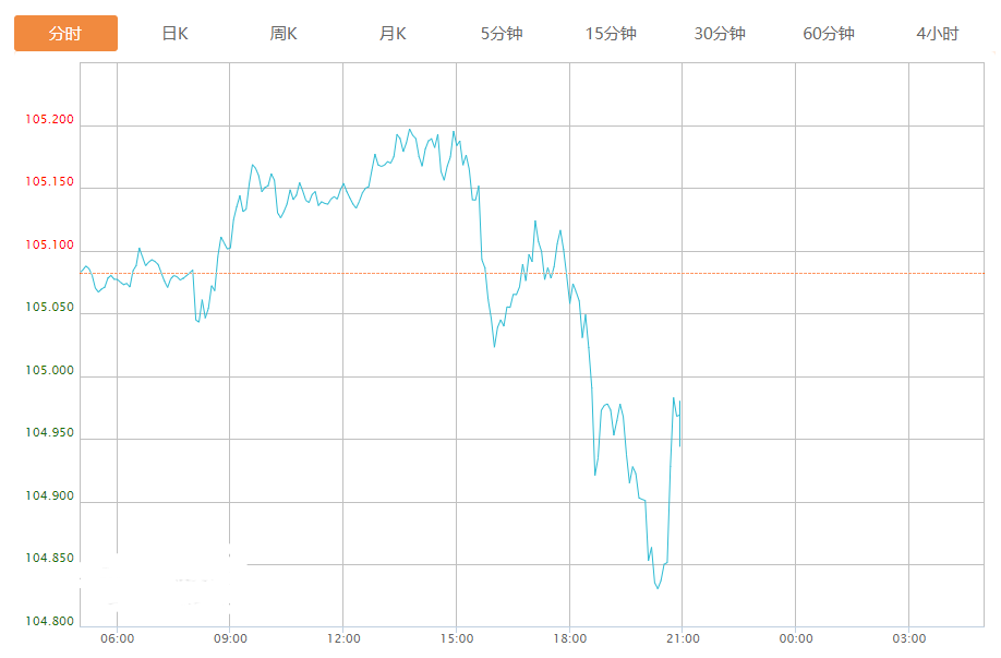 截至目前,美元指数下跌0.11%,报104.967。