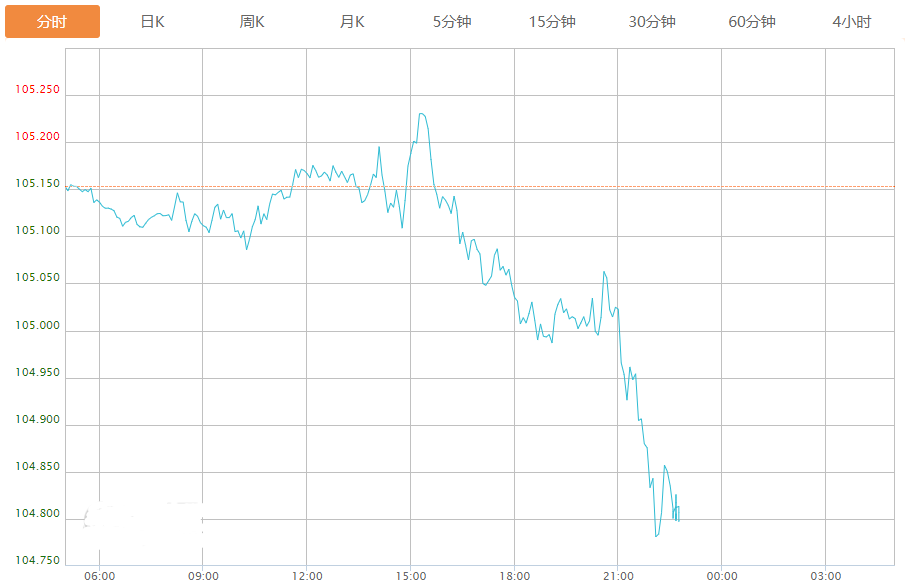 截至目前,美元指数下跌0.32%,报104.815。
