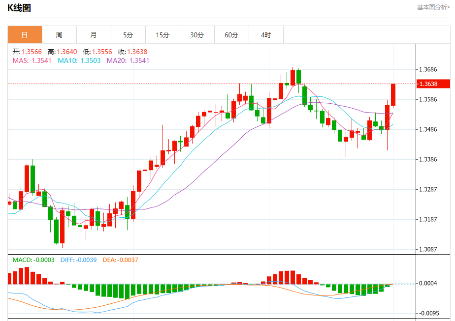 截至目前,美元/加元上涨0.52%,报1.3640。