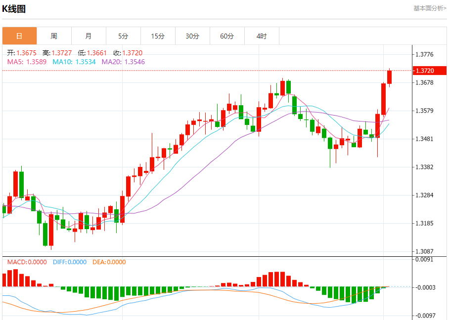 截至目前,美元/加元上涨0.33%,报1.3722。