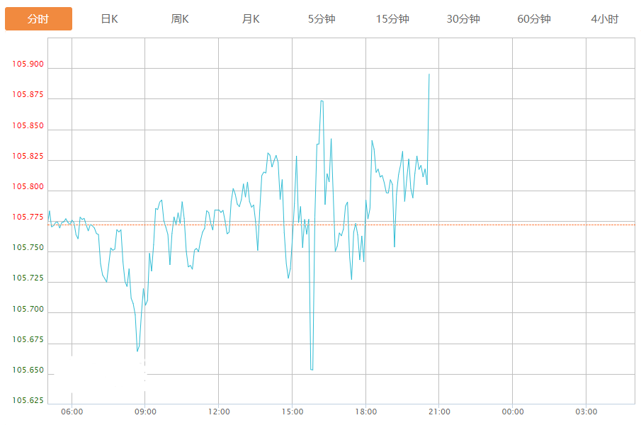 截至目前,美元指数上涨0.11%,报105.892。