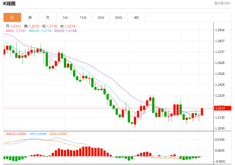 截至目前,英镑/美元上涨0.52%,报1.2215。