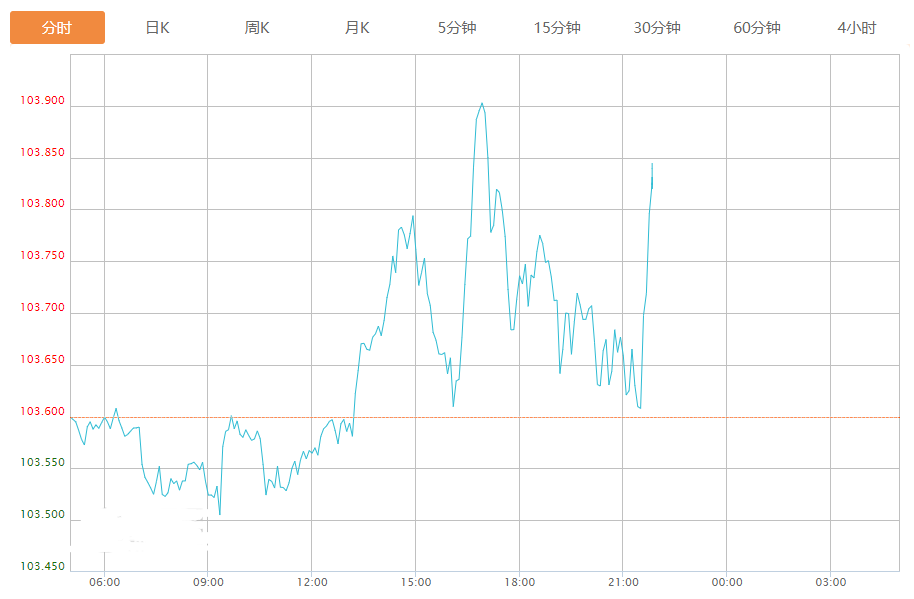 截至目前,美元指数上涨0.21%,报103.820。