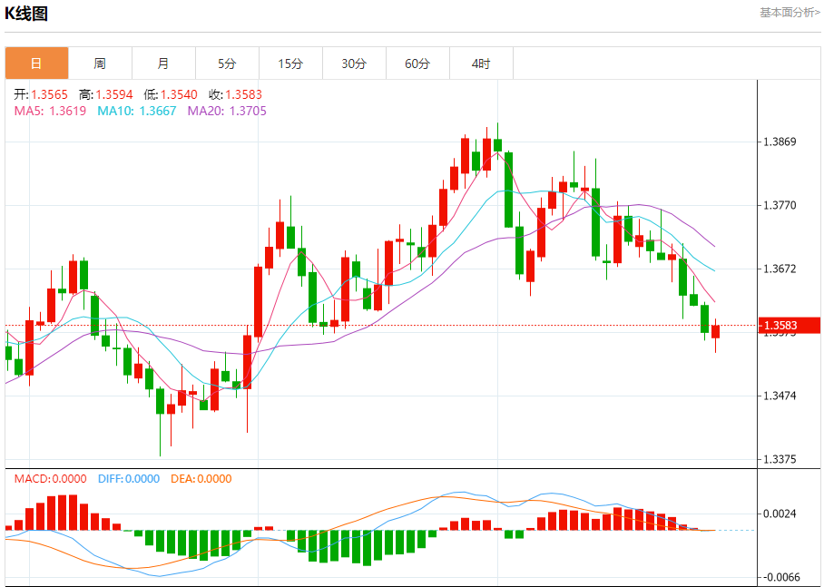 截至目前,美元/加元上涨0.08%,报1.3585。
