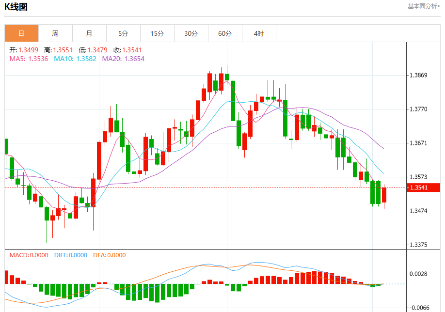 截至目前,美元/加元上涨0.34%,报1.3542。