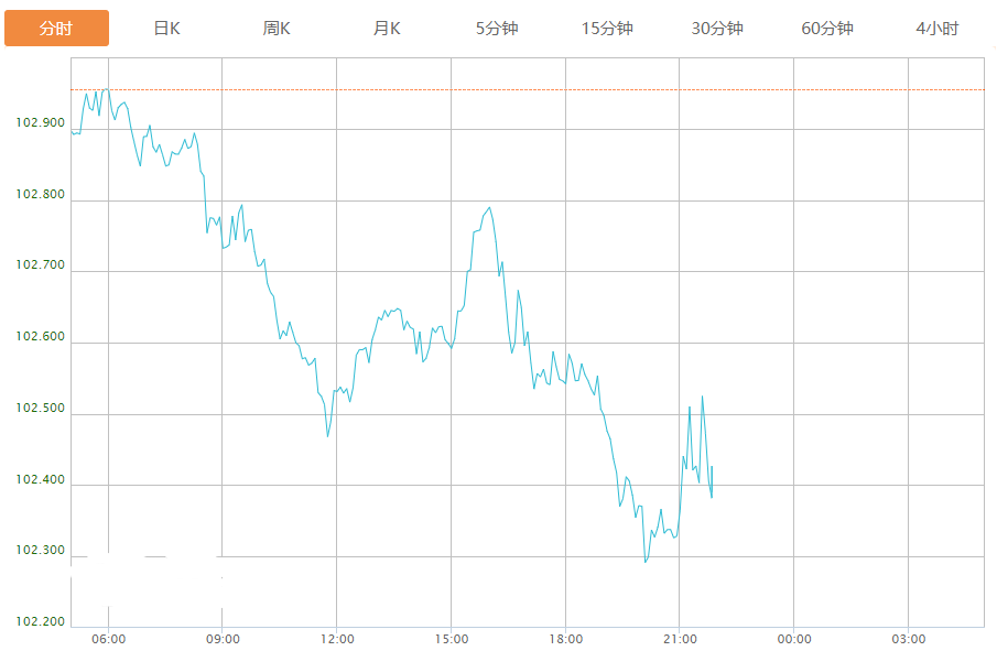 截至目前,美元指数下跌0.54%,报102.398。