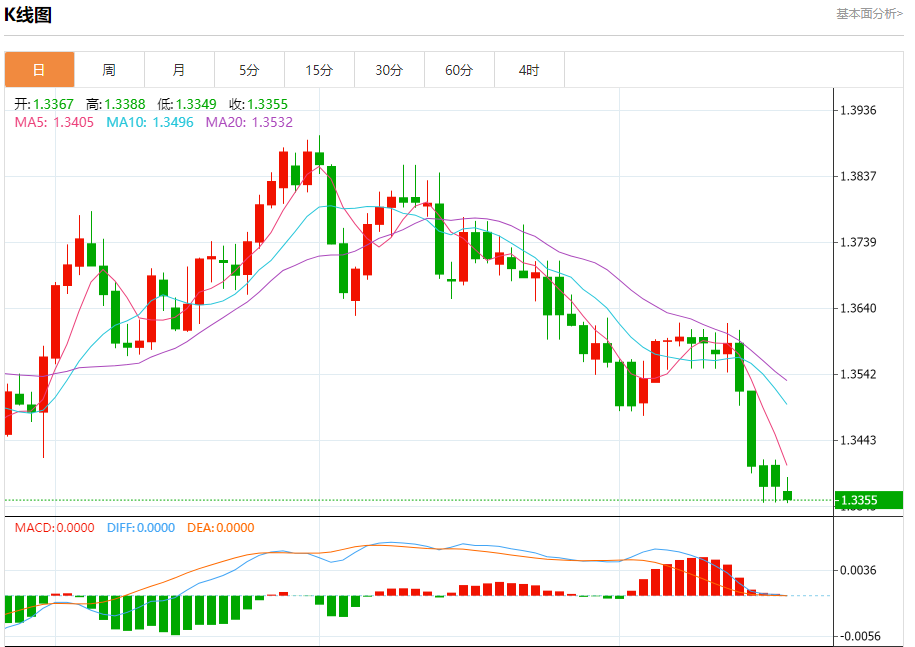 截至目前,美元/加元下跌0.15%,报1.3356。