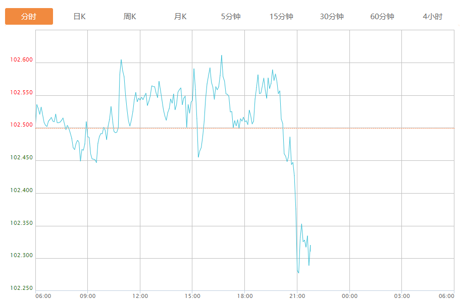 截至目前,美元指数下跌0.18%,报102.315。