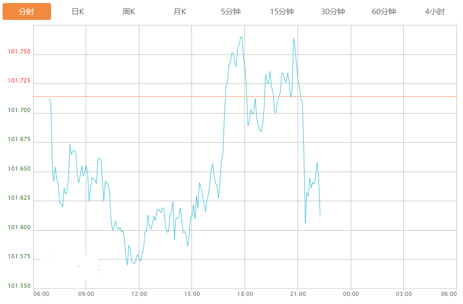 截至目前,美元指数下跌0.10%,报101.614。
