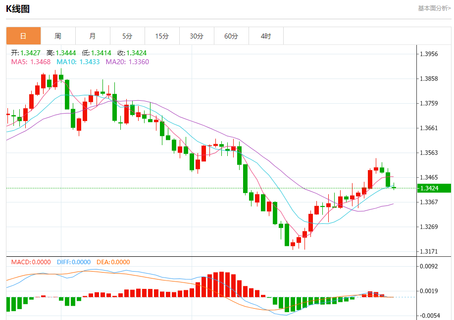截至目前,美元/加元下跌0.04%,报1.3425。