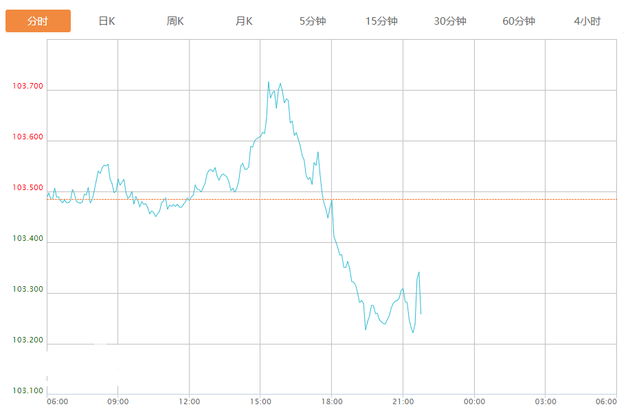 截至目前,美元指数下跌0.22%,报103.258。