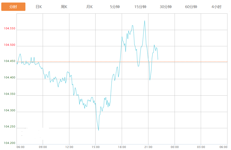 截至目前,美元指数上涨0.01%,报104.466。