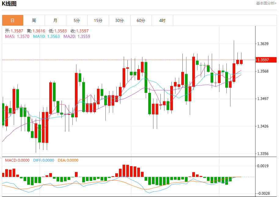 截至目前,美元/加元上涨0.06%,报1.3599。
