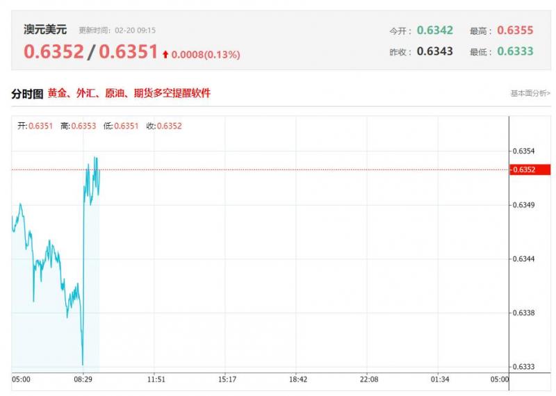 截至目前,澳元/美元上涨0.13%,报0.6351。