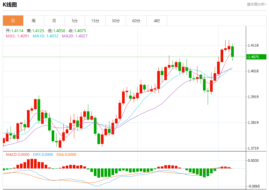 截至目前,美元/加元下跌0.28%,报1.4077。