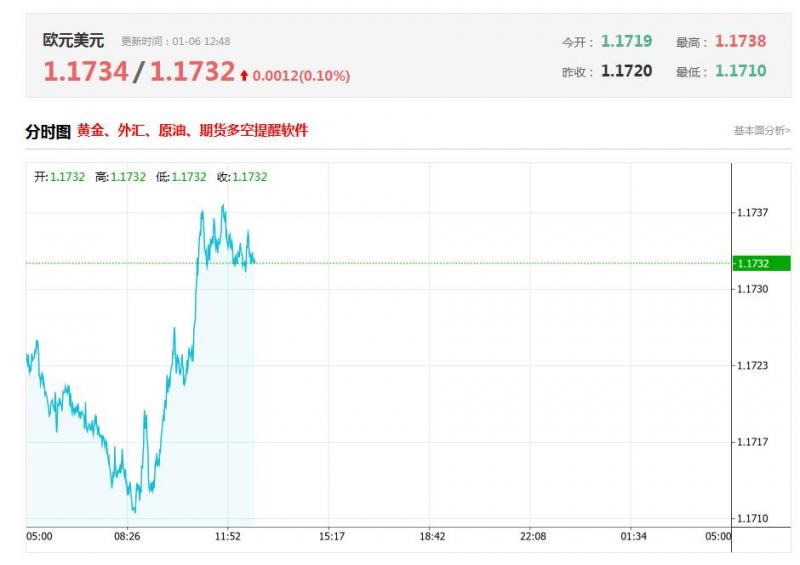 截至目前,欧元/美元上涨0.10%,报1.1732。