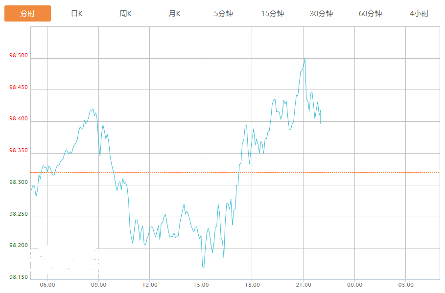 截至目前,美元指数上涨0.10%,报98.406。