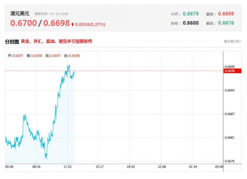截至目前,澳元/美元上涨0.27%,报0.6698。