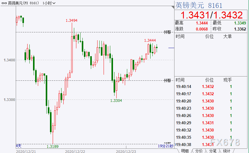 英镑兑美元最大上涨逾0.6%至1.3446,可能停止连续三天的跌势,但走势料继续摇摆不定。距离英国在年底脱欧前与欧盟达成贸易协议的大限只剩几天,投资者等候谈判取得进展的迹象。