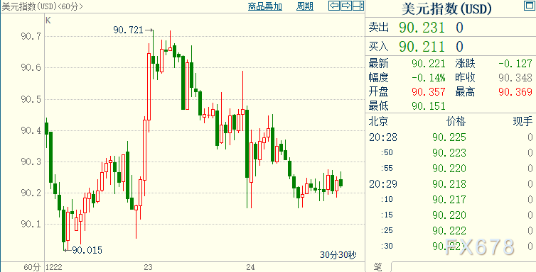 现货黄金上浮0.10%至1874.68美元/盎司;COMEX期金主力合约上浮0.04%至1878.8美元/盎司;美元指数下跌0.10%至90.220。