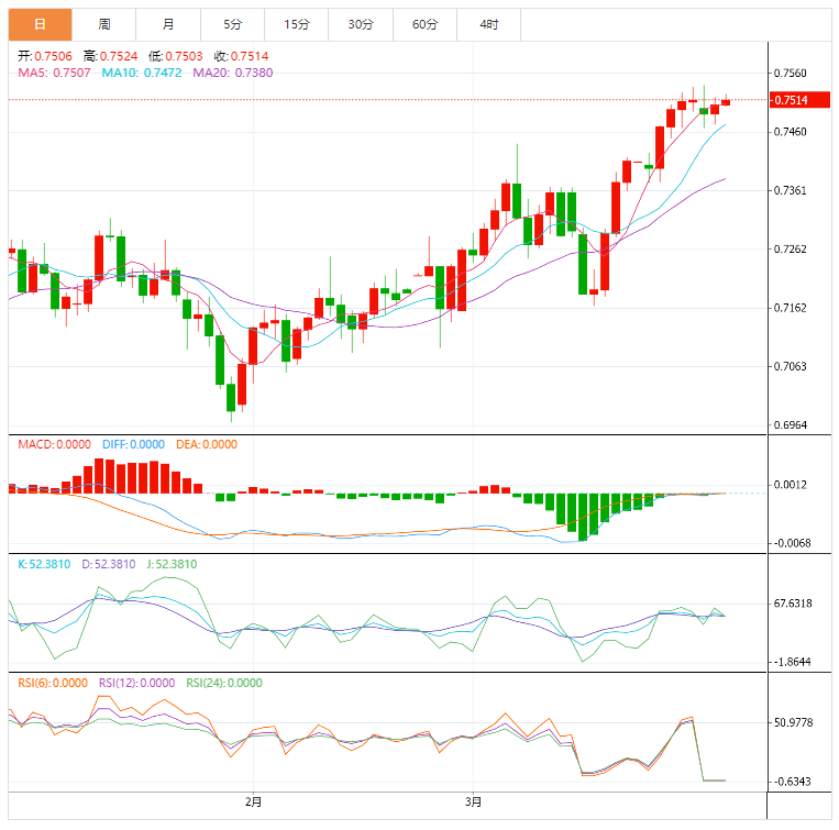 除此之外,周二公布的澳洲零售销售数据乐观,支撑澳元兑强势美元。澳大利亚统计局(Australian Bureau of Statistics)公布的月度零售额为1.8%,远高于初步估计的1%,但与此前1.8%的数据一致。