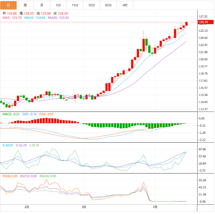 如果该货币对向下修正,美元兑日元的首个支撑位将是3月25日的日高125.10。后者的突破将暴露124.00,然后是4月5日的日高点123.67。