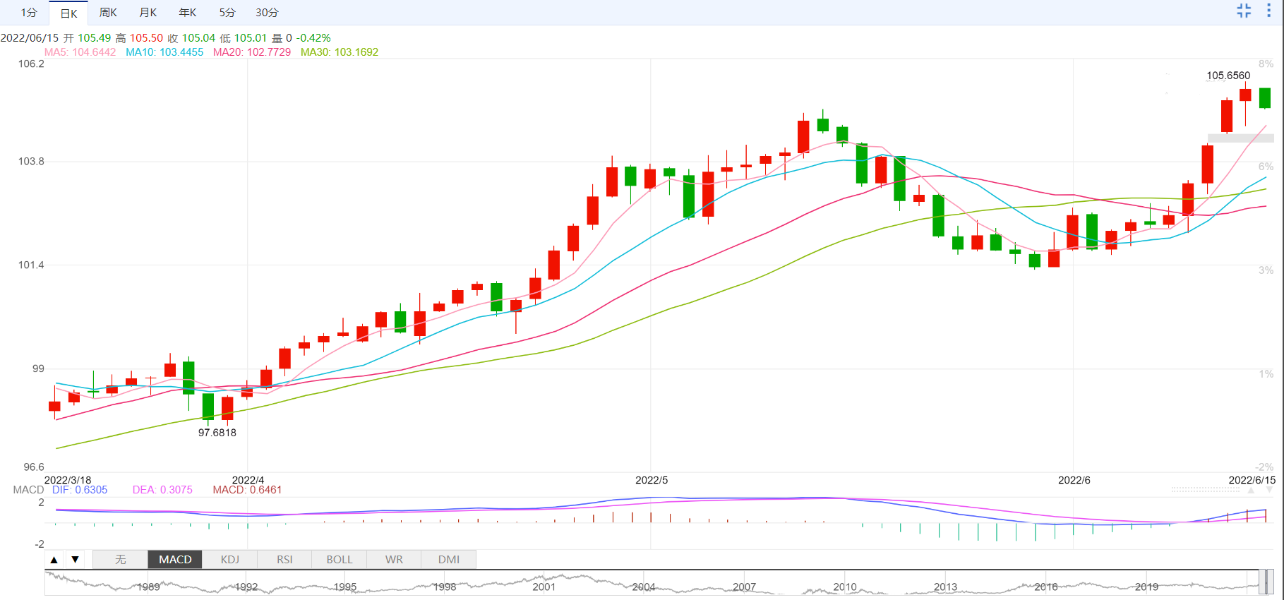 尽管如此,美国5月份的生产者价格指数(PPI)让美国债券票面利率从11年高点回落,并引发美元回落。也就是说,美国PPI与环比预测相符,为0.8%,同比数据也降至10.8%,而此前的预期数据为10.9%。剔除食品和能源的核心PPI(即PPI)同比预期为8.3%,低于8.6%。