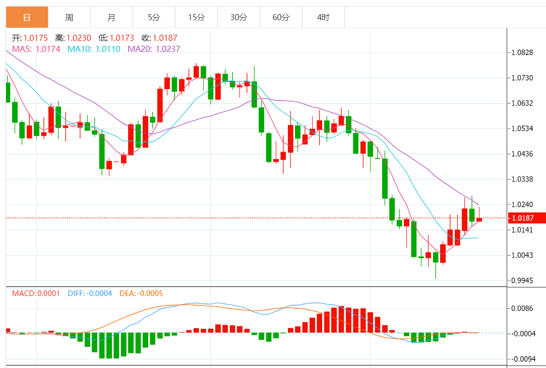因此,只要欧元/美元保持在1.0200-1.0160上方,那么我们将继续预测该货币对在未来一段时间处于看涨趋势。