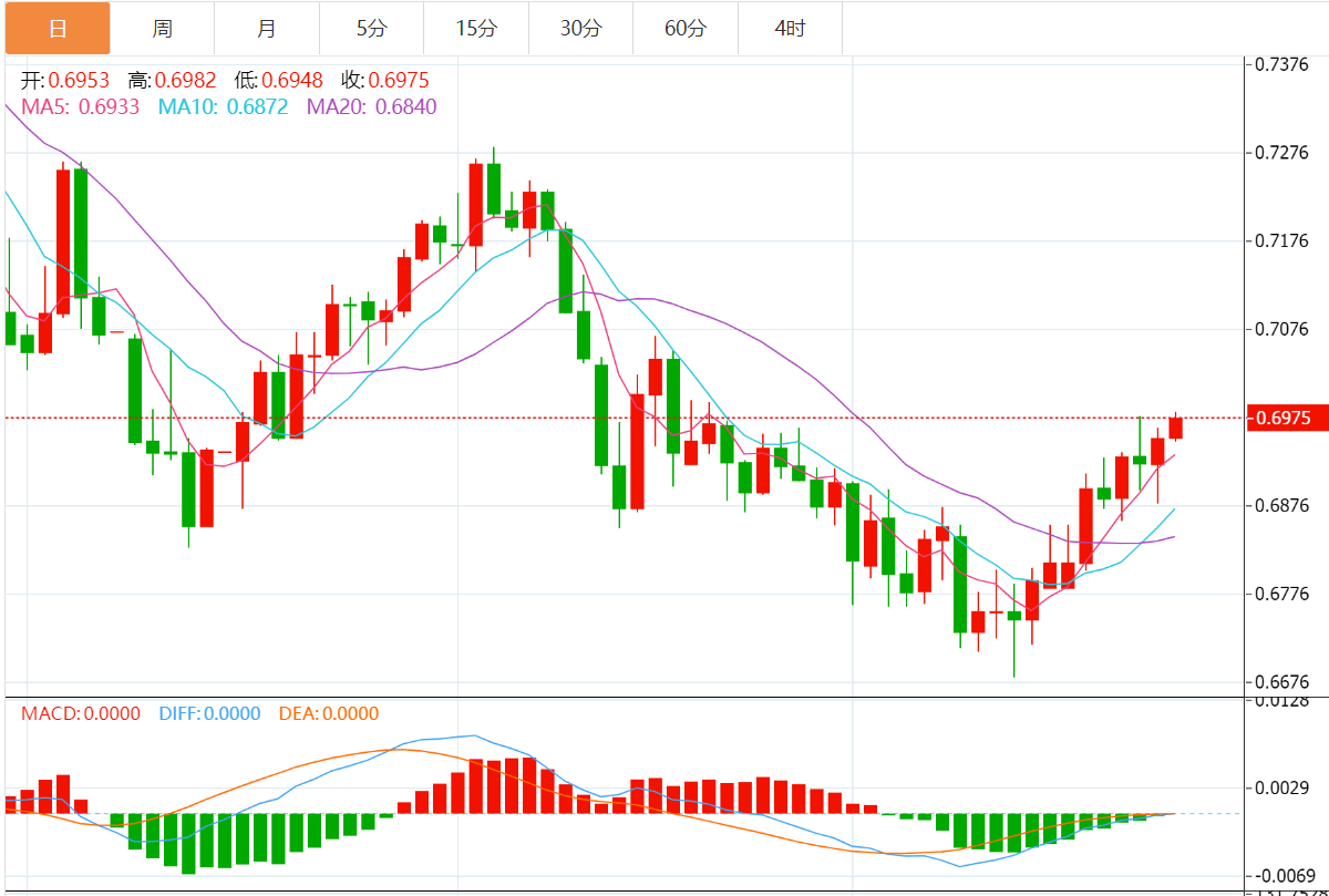 技术日图显示,随着汇价自趋势线支撑位攀升,多头的目标突破近期高点,接近 0.7050 关口。